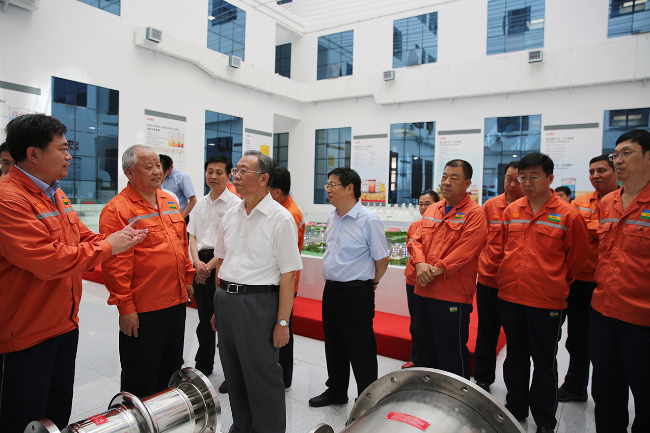 在產(chǎn)品展廳,張金成董事長(zhǎng)匯報(bào)了集團(tuán)近年來的發(fā)展情況和下一步的發(fā)展方向。他介紹說,按照全省發(fā)展高端化工產(chǎn)業(yè)的聚焦方向,集團(tuán)堅(jiān)持以供給側(cè)改革為總抓手,堅(jiān)決抓住新舊動(dòng)能轉(zhuǎn)換的有利時(shí)機(jī),按照環(huán)保節(jié)能、淘汰落后產(chǎn)能的要求,在前期先后關(guān)停、轉(zhuǎn)型、進(jìn)園4家城區(qū)企業(yè)的成功基礎(chǔ)上,2016年又先后停運(yùn)了3家城區(qū)化肥生產(chǎn)企業(yè),實(shí)現(xiàn)平穩(wěn)停車、平穩(wěn)過渡,投資60億元建設(shè)的退城進(jìn)園一體化項(xiàng)目順利實(shí)施。集團(tuán)逐步實(shí)現(xiàn)了由傳統(tǒng)化肥向基礎(chǔ)化工,由基礎(chǔ)化工向化工新材料的轉(zhuǎn)型。盡管受到地域、資源、能源、交通物流等因素的限制,魯西集團(tuán)堅(jiān)定向高端化工進(jìn)軍的信心和決心,表示要努力把高分子材料產(chǎn)業(yè)做好,實(shí)現(xiàn)技術(shù)性的重大突破。制造加工業(yè)方面,已經(jīng)形成了較強(qiáng)的化工裝備制造能力,擁有自行設(shè)計(jì)、自行制造、自行安裝,關(guān)鍵技術(shù)自行研究的強(qiáng)大優(yōu)勢(shì)。根據(jù)目前自身的發(fā)展條件,今后堅(jiān)決做好制造加工業(yè),并將制造與工程產(chǎn)業(yè)作為集團(tuán)的第二核心產(chǎn)業(yè)進(jìn)行培植,為國(guó)家的基礎(chǔ)行業(yè)發(fā)展作貢獻(xiàn)。