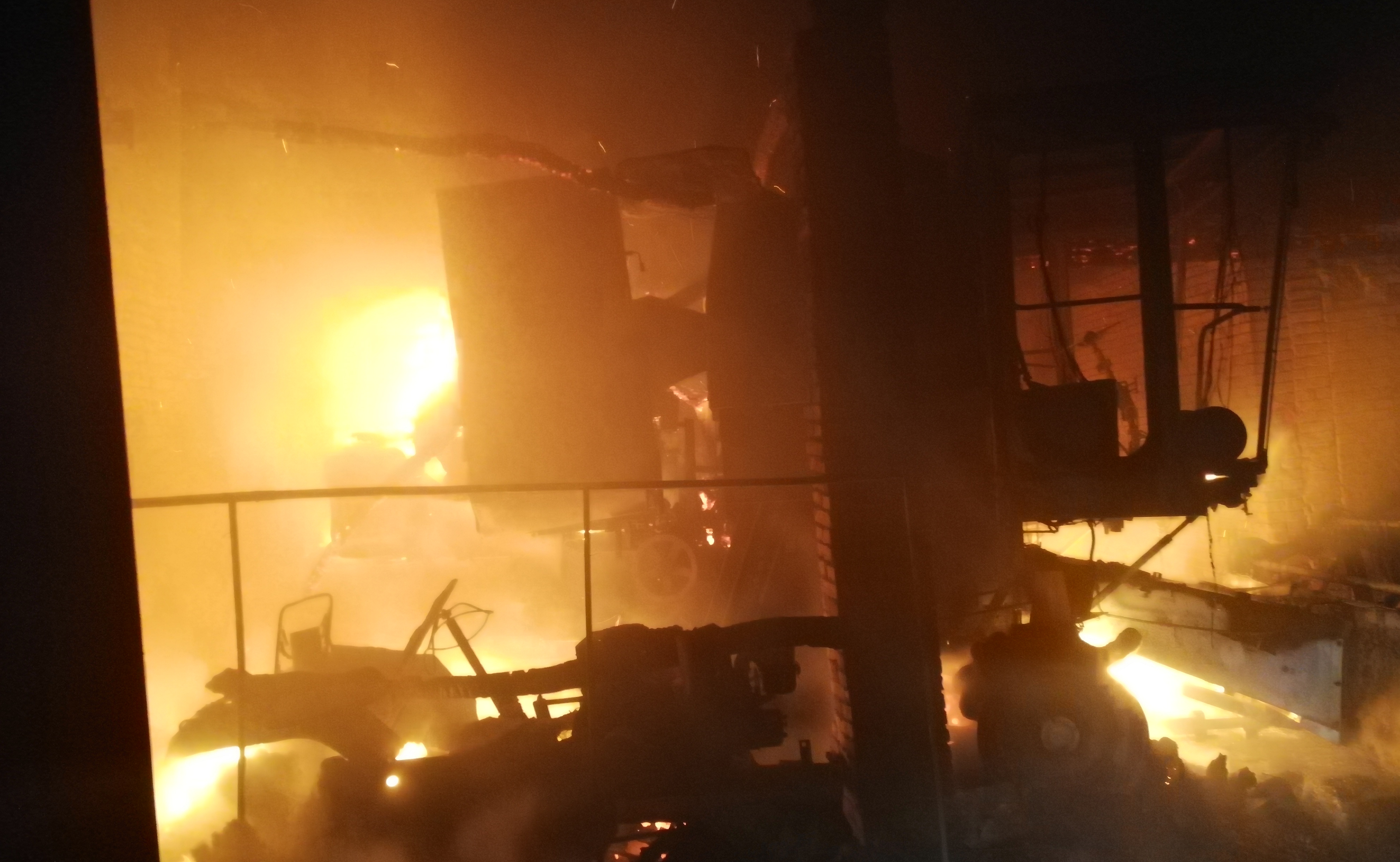 根據(jù)現(xiàn)場情況,出警人員聯(lián)系居民切斷電源,并疏散現(xiàn)場圍觀人員,同時(shí)迅速安排隊(duì)員鋪設(shè)水帶,對(duì)著火部位進(jìn)行撲救。但在撲救過程中,發(fā)現(xiàn)不能對(duì)火勢(shì)進(jìn)行有效壓制,隨即向著火居民詢問現(xiàn)場是否存在其他易燃物質(zhì),得知聯(lián)合收割機(jī)下曾放置兩桶柴油,已發(fā)生爆燃。根據(jù)這一信息,隨即改為用泡沫對(duì)聯(lián)合收割機(jī)及油桶進(jìn)行覆蓋,成功控制火勢(shì)。19:20分火勢(shì)全部熄滅,經(jīng)現(xiàn)場仔細(xì)偵查,確認(rèn)安全后結(jié)束救援。