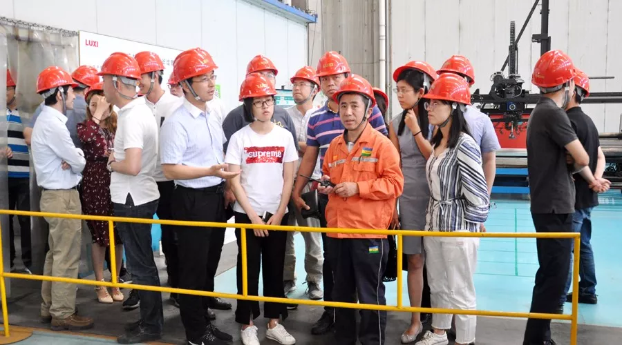 圖為參會(huì)股東和投資者代表參觀重型裝備廠(chǎng)房。