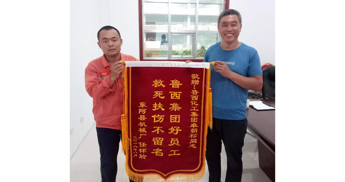 8月30日,在魯西集團(tuán)接待中心,迎來了三位滿面感激的外來人員,他們一進(jìn)門就一邊把一面寫有“救死扶傷不留名,魯西集團(tuán)好員工”的錦旗在接待臺(tái)上展開,一邊迫不及待的向接待人員打聽一位叫卓朝松的魯西員工,急急傾訴著他們的來意和感激之情。經(jīng)過接待人員的熱誠接待和細(xì)細(xì)探詢,終于在魯西集團(tuán)氯甲烷事業(yè)部聯(lián)系到這位名叫卓朝松的魯西員工,經(jīng)過雙方見面,接待人員漸漸明白這件事的來龍去脈。