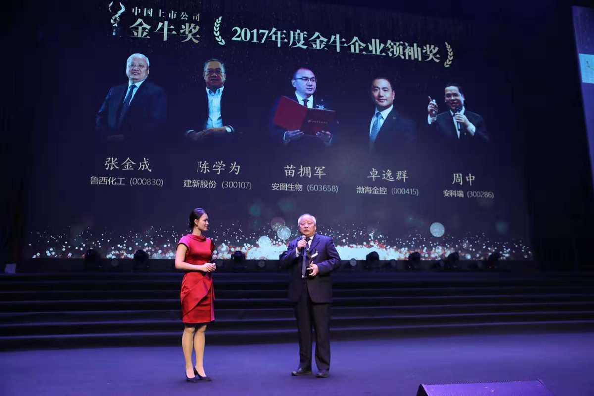 11月15日,由中國證券報主辦的第二十屆中國上市公司金牛獎頒獎盛典在四川成都舉辦。魯西化工集團(tuán)董事長張金成榮獲“中國上市公司金牛企業(yè)領(lǐng)袖獎”,并作為代表做了規(guī)范、堅守和創(chuàng)新的獲獎感言。