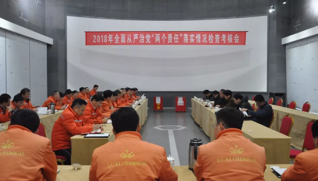 會議首先由市紀(jì)委常委、監(jiān)委委員、檢查組組長任國龍同志代表上級講話并明確提出工作要求;其次由集團黨委書記張金成同志、紀(jì)委書記王福江同志分別匯報魯西集團2018年度落實全面從嚴(yán)治黨主體責(zé)任和監(jiān)督責(zé)任整體工作情況;隨后,參會干部對集團全面從嚴(yán)治黨“兩個責(zé)任”落實情況進行民主測評;最后檢查組現(xiàn)場檢查資料。