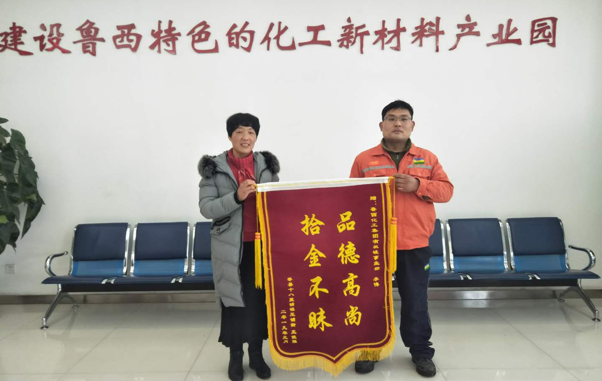 近日一面印有“品德高尚、拾金不昧”的錦旗送到了魯西集團(tuán)接待處,經(jīng)接待處同志詢(xún)問(wèn)得知,是來(lái)對(duì)魯西集團(tuán)下屬單位有機(jī)硅事業(yè)部李博同志拾金不昧的行為表示感謝。