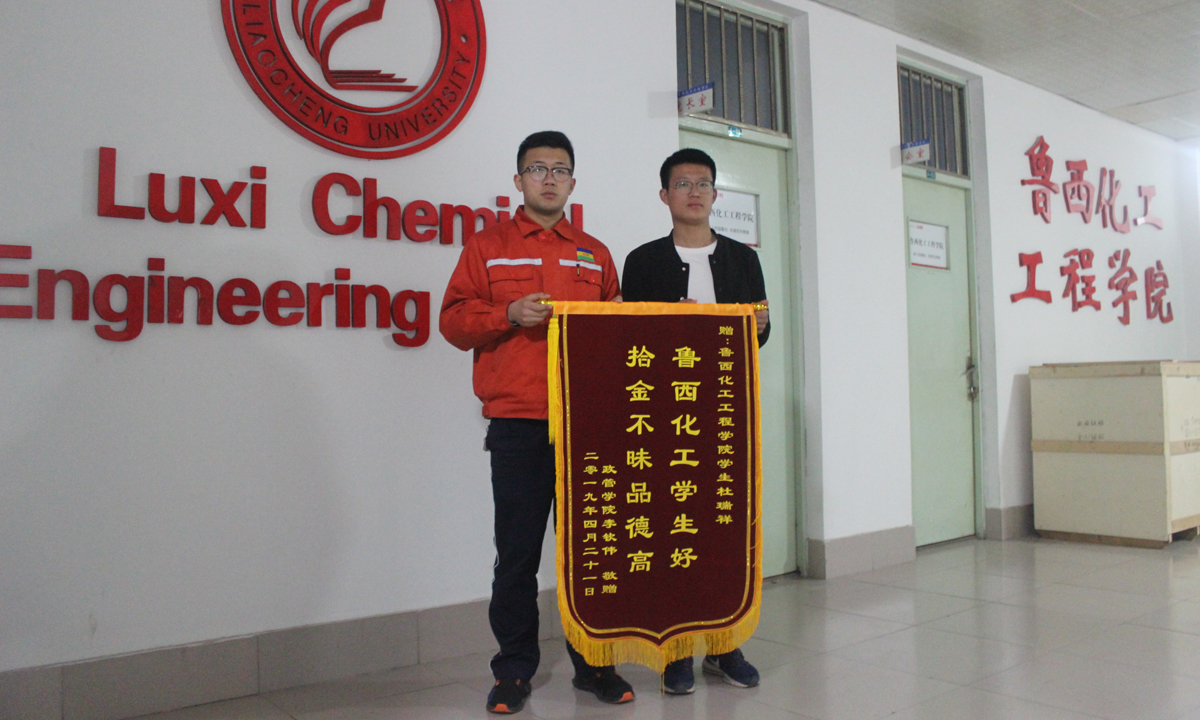近日,聊城大學(xué)政管學(xué)院李欽偉同學(xué)來到魯西化工工程學(xué)院管理辦公室,送來一面“魯西化工學(xué)生好 拾金不昧品德高”的錦旗。