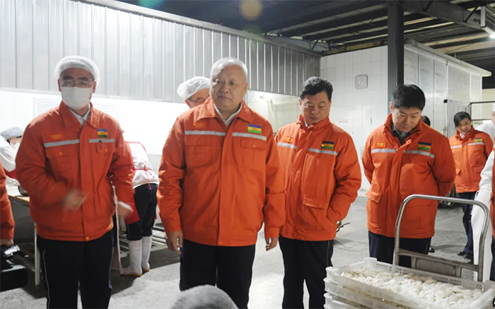 在第三餐廳,黨委書記仔細查看了年夜飯的備齊情況。在看到正在使用的水餃機和自動炒鍋時,詢問周邊企業(yè)是否有更先進的食品加工設(shè)備,當?shù)弥覀冊诖妒略O(shè)備選型和使用已經(jīng)比較先進時,要求堅持人員不增加,繼續(xù)做好相關(guān)先進設(shè)備的考察和選用,利用好先進的設(shè)備。同時叮囑膳食處負責(zé)人要嚴格抓好食品安全關(guān),做好購進食材的驗收、檢測、儲存等環(huán)節(jié)管理,確保員工就餐安全,確保員工過年吃的安心、放心、開心。
