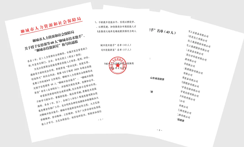 魯西集團陳娟、牟龍靜、唐文棟、李保路、衣后領(lǐng)、宋風(fēng)庫、高慧蘭、王芳、鐘飛、王琳琳、亢肖彥、楊本宏、劉立振等13人因在第十一屆山東省化工行業(yè)職業(yè)技能大賽上取得優(yōu)異成績,于6月上旬被聊城市人力資源和社會保障局授予“聊城市技術(shù)能手”稱號。