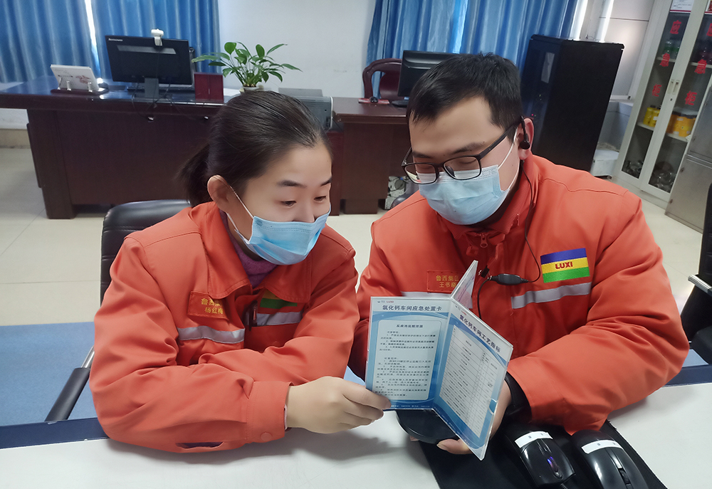 近日,在氯化芐事業(yè)部每個DCS崗位操作臺的一角都規(guī)整的擺放著一個類似相框的旋轉(zhuǎn)擺臺。調(diào)度龐玉奇正在向操作人員介紹著這個旋轉(zhuǎn)擺臺,“這就是咱們氯化鈣操作崗位的‘一崗三卡’擺臺,它分為三面,是可以旋轉(zhuǎn)查看的。三卡包含崗位物料MSDS卡、應(yīng)急處置卡和安全風(fēng)險卡。崗位物料MSDS是指本崗位的崗位物料知識及工藝指標(biāo)要求;安全風(fēng)險卡包含崗位危險因素知識;應(yīng)急處置卡包含危險品應(yīng)急處置程序。大家一定要掌握這些應(yīng)知應(yīng)會的基礎(chǔ)知識?!?nbsp;