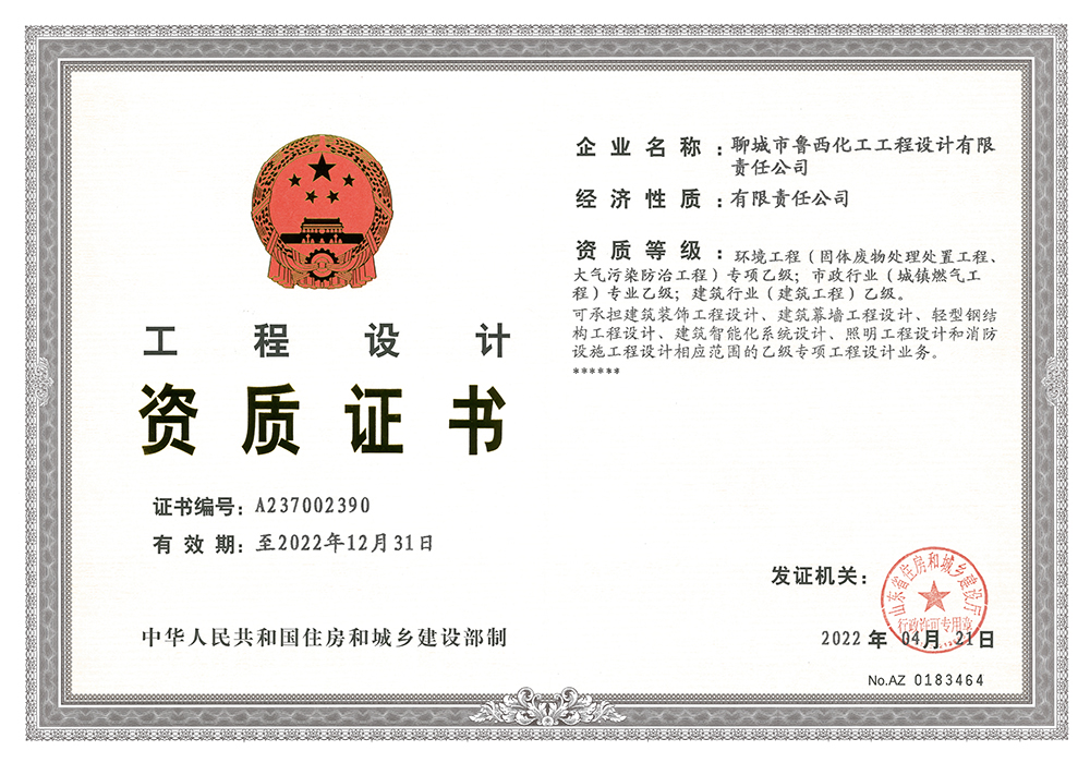 新資質的取得,標志著魯西設計院今后可獨立承擔整個化工園區(qū)的固體廢物處理處置工程項目設計,進一步擴大了經(jīng)營范圍,增強了競爭優(yōu)勢。
