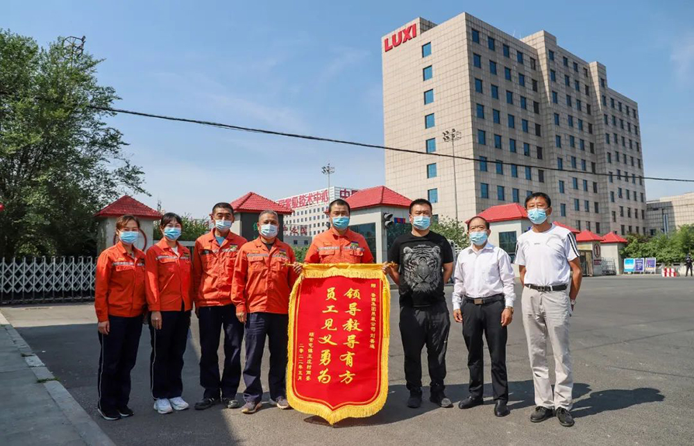 “已經(jīng)出院了,老人的精神狀態(tài)不錯(cuò)。”王書記是被救老人所在村的村支部書記,接受記者采訪時(shí),他剛從老人家出來,“老太太已經(jīng)60多歲了,要不是劉善連,后果不堪設(shè)想,慢一分鐘都不行!” “當(dāng)天被救人家屬就給我們村委打電話,讓我們幫忙找救命恩人”,王書記說,“當(dāng)時(shí)有我們的村民在現(xiàn)場,多方詢問才知道,是我們鄰村人劉善連,在魯西上班。”5月23日,村兩委受被救人家屬委托,將寫著“領(lǐng)導(dǎo)教導(dǎo)有方 員工見義勇為”的錦旗送到了魯西集團(tuán)劉善連的手中,表達(dá)了萬分感謝之情。