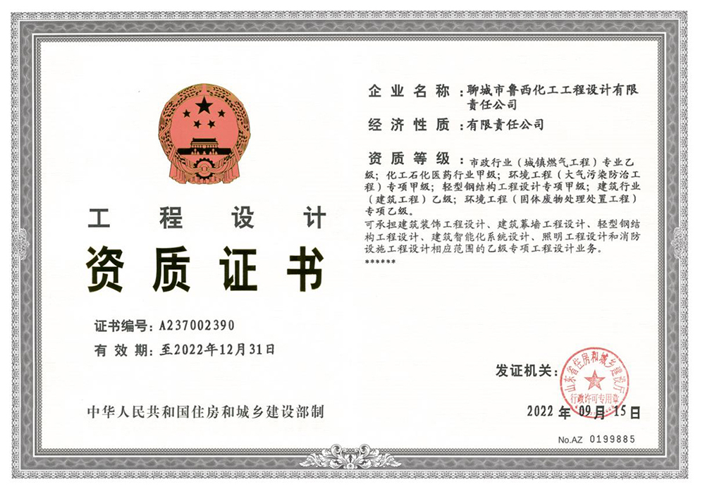 這是魯西集團(tuán)設(shè)計院繼2022年4月份,取得固體廢物處理處置工程乙級資質(zhì)后,再次迎來的好消息。經(jīng)山東省住房和城鄉(xiāng)建設(shè)廳關(guān)于對2022年第十批工程勘察設(shè)計資質(zhì),魯建許【2022】65號文件公示后,成功取得大氣污染防治工程專項甲級資質(zhì)證書。