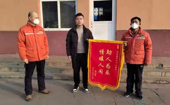 2月3日上午,市民張先生來(lái)到第五化肥廠,將一面印有“助人為樂(lè) 情暖人間”的錦旗送到五廠員工王東升的手中,并衷心感謝到:“真的非常感謝你,多虧了你,我爸才能平安回家”。