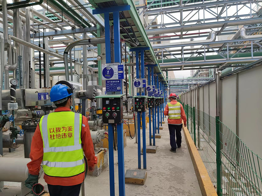 多元醇事業(yè)部進(jìn)一步深入開展“黃馬甲”管理活動,充分發(fā)揮領(lǐng)導(dǎo)示范作用,實施“部長、總監(jiān)、責(zé)任單位負(fù)責(zé)人”三級人員穿甲引領(lǐng)示范,著“黃馬甲”深入現(xiàn)場查找不安全行為和安全隱患,傳授督察應(yīng)知應(yīng)會專業(yè)知識,做好安全第一吹哨人。