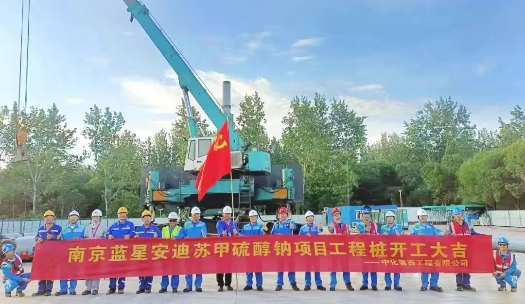中化魯西工程承建的南京藍(lán)星安迪蘇甲硫醇鈉項(xiàng)目工程樁開工儀式隆重舉行。項(xiàng)目從籌備到開工,施工團(tuán)隊(duì)始終秉持"安全第一、質(zhì)量至上"的理念,行非常規(guī)之舉,采取非常規(guī)措施,在最短時(shí)間內(nèi)推進(jìn)土建樁機(jī)開工。