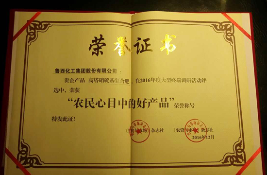 峰會(huì)開(kāi)幕后便公布了萬(wàn)眾注目的“農(nóng)民心目中的好產(chǎn)品”獲獎(jiǎng)品牌產(chǎn)品名單。魯西集團(tuán)生產(chǎn)的高塔硝硫基復(fù)合肥以較高的網(wǎng)絡(luò)人氣和農(nóng)戶滿意度再次榮獲“農(nóng)民心目中的好產(chǎn)品”榮譽(yù)稱號(hào)。