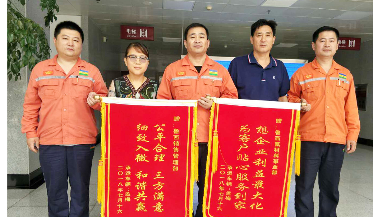 7月30日,東阿明鑫物流公司車輛負(fù)責(zé)人王長(zhǎng)義、孟梅來(lái)到魯西集團(tuán),激動(dòng)地將印有“公平合理 三方滿意 細(xì)致入微 和諧共贏”、“想企業(yè)利益最大化 為客戶貼心服務(wù)到家”字樣的兩面錦旗送到銷售管理部物流管理人員李登旭和氟材料事業(yè)部銷售經(jīng)理?xiàng)钕绕焓种?,連聲感謝。并向記者講述了一則魯西集團(tuán)員工公平公正妥善處理虧噸事件的故事。