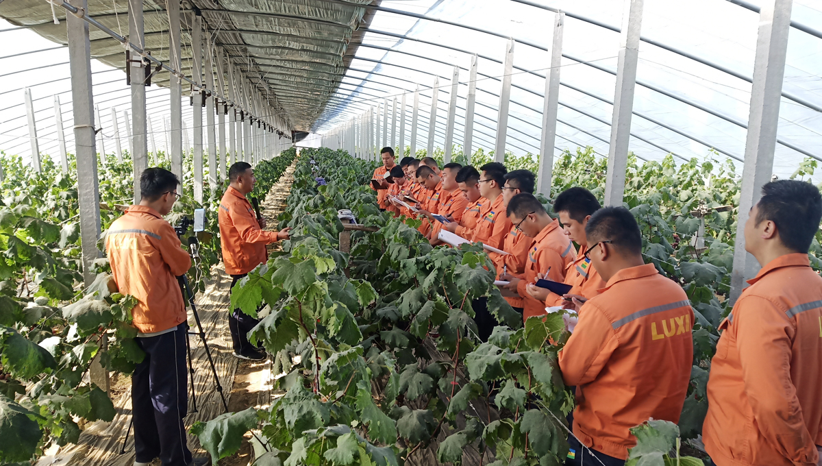 5月份,魯西集團(tuán)化肥事業(yè)部在原定農(nóng)化知識培訓(xùn)基礎(chǔ)上,特增加了實(shí)訓(xùn)課程,并利用快手自媒體平臺開通“魯西農(nóng)技大講堂”,第一次實(shí)現(xiàn)網(wǎng)絡(luò)直播。在茌平縣韓集鎮(zhèn)葡萄大棚內(nèi),張榮品就葡萄病蟲害防治、種植管理技術(shù)、土壤整治等方面進(jìn)行了詳細(xì)的講解和演示;在冠縣桑阿鎮(zhèn)張榮品帶領(lǐng)實(shí)訓(xùn)人員就蘋果、油桃管理,與當(dāng)?shù)剞r(nóng)化專家進(jìn)行了深入交流學(xué)習(xí)。實(shí)訓(xùn)直播過程中,對現(xiàn)場人員和網(wǎng)友提出的農(nóng)化問題進(jìn)行了一一解答,取得了良好效果,業(yè)務(wù)人員紛紛表示此次培訓(xùn)受益匪淺,學(xué)到了很多經(jīng)驗(yàn),室內(nèi)培訓(xùn)的理論知識在室外得到了應(yīng)用,很有獲得感。