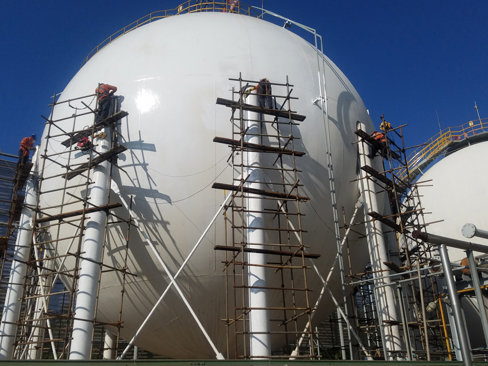 4月19—24日,魯西集團氟材料事業(yè)部的維保人員經(jīng)過為期六天的緊張忙碌,完成了26米高、2000立方容積球罐井字架架桿扎設工作,為球罐防腐刷漆做好了前期準備工作,首次取得了架桿扎設無外協(xié)、費用零支出的目標,實現(xiàn)了自主實施。